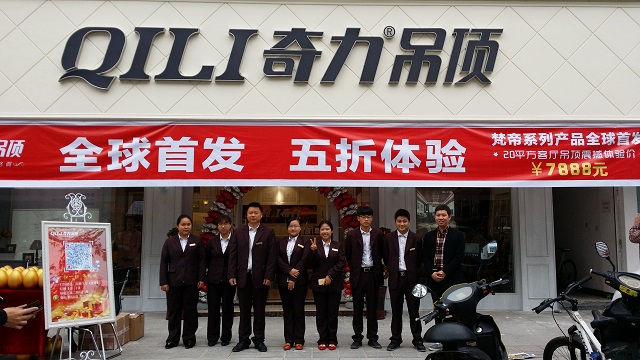 仙居位于浙江臺州,又稱“神仙居”,當地群眾對旅游環境和自身居住環境都無比重視。奇力仙居店自2013年以來,屢屢創出令全國經銷商矚目之記錄,實為奇力在浙江,集成吊頂競爭最為激烈的戰場上最為耀眼的一面軍旗。此次旗艦店試營業,是仙居繼2014年業績倍增之后一直積極籌備的一大舉措。在經歷了奇力2015年“大商至簡.大業至道”營銷峰會暨“梵帝”新品發布會之后,仙居經銷商趙文斌信心倍增。根據經銷規模擴大的需要,新品發布正逢其時,更為成熟系統的“美式風尚”SI,從設計到裝修完工,趙總再一次走在全國經銷商的前列,締造了最新一代“美式風尚”形象樣板店,也是仙居集成吊頂樣板店。雙店運營,仙居奇力霸主地位,愈發牢固。