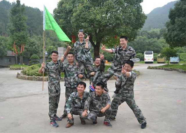 7月16日早上7點,所有人員整裝待發去杭州臨安的訓練基地。上午九點整所有人到達目的地,換上了英姿颯爽的迷彩服排好隊伍。