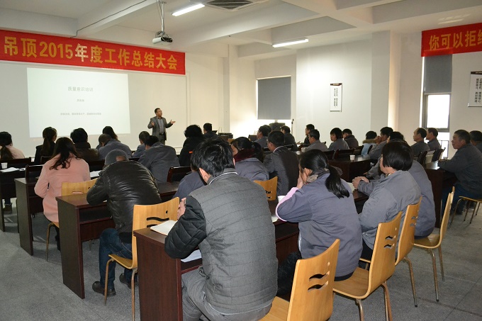 在洪總的熱情洋溢的主持下,質量主管王工聲情并茂的給員工講述了“質量是全員參與。”一個企業的質量是一切東西的基礎,沒有質量,談什么品牌、發展、競爭都是空話,尤其是對于我們吊頂行業來說,質量更是我們賴以生存和發展的基石。