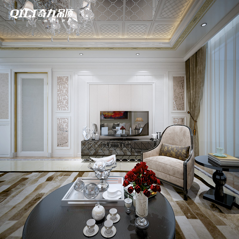 在美式、法式或者古典風(fēng)格里,踢腳線和門(mén)套、天花等等形成視覺(jué)上的統(tǒng)一效果,起到裝飾性作用。